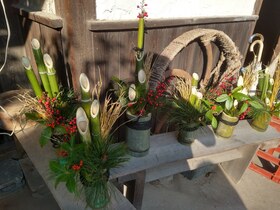 畑で冬野菜を収穫し、山に出かけてリースの材料探し、