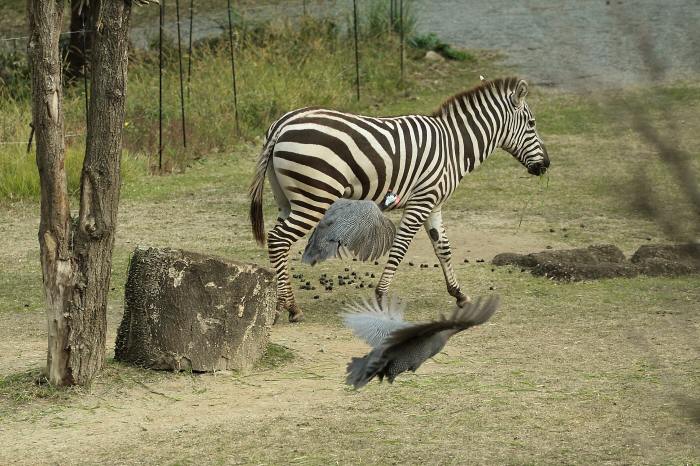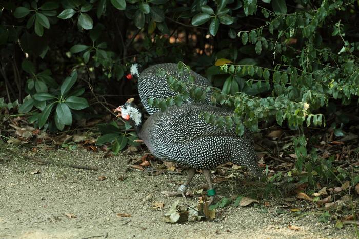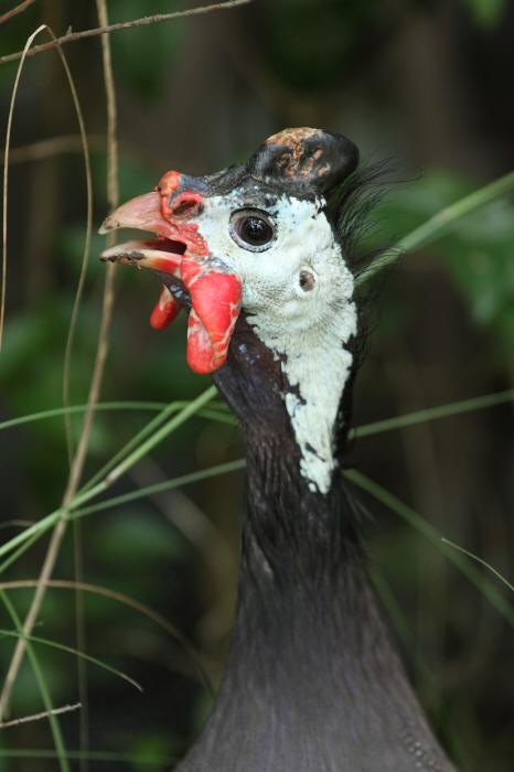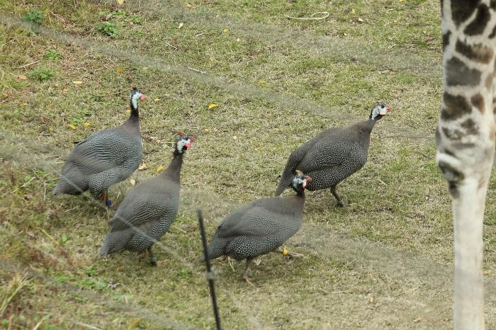キジやニワトリなどと近い関係にあります。同じホロホロチョウの仲間には天王寺動物園にフサホロホロチョウがいます。