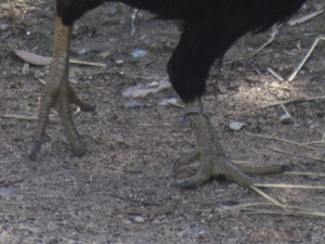 大きな爪付きの足で地面を掘って餌になる虫を探します。指は長く、木にも止まれるようになっています。