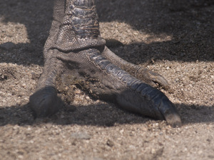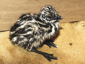 オーストラリア全域の草原や開けた砂地に 生息しています。翼は約20cm程と小さく,飛ぶことはできませんが,自慢の足で時速40~50kmで走ることができます。メスは卵を産むと巣を離れ、巣作りから、抱卵、子育てまでオスが行います。子育て中,オスは一切エサを食べず,体重は約半分まで減少します。暑くなると翼を広げ脇の下から熱を放出しま す。オスは「ウォー」と低い、メスは「ボン・・・ボボン」とドラムのような鳴き声を出します。